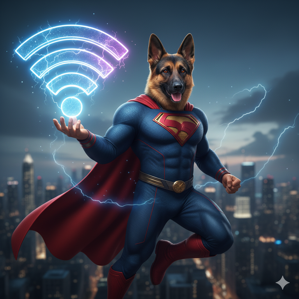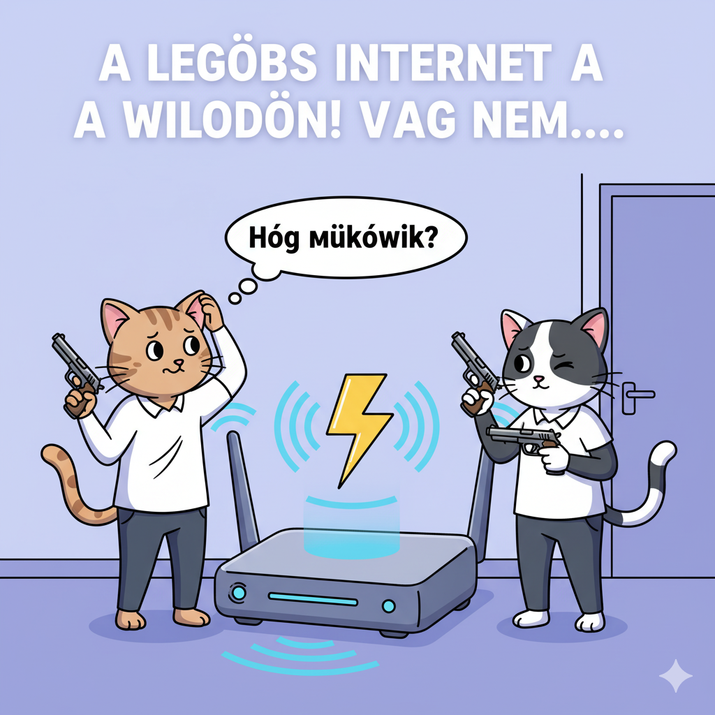 A mi szuperhősünk, WiFi Joy, éjjel-nappal azon dolgozik, hogy a legerősebb jelet biztosítsa számodra! Nincs olyan fal, amit ne tudna átlőni a WiFi sugara! ⚡